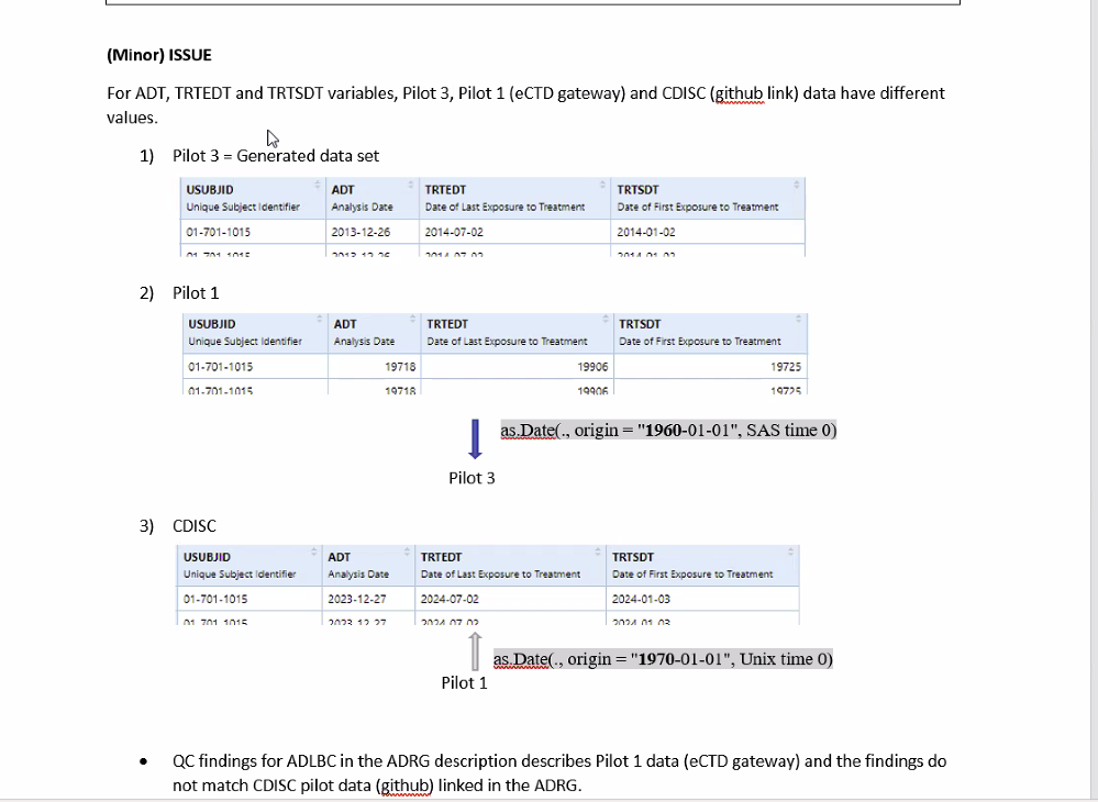 - QC of the ADRG did turn up a minor issue regarding inconsistencies among three date variables.
